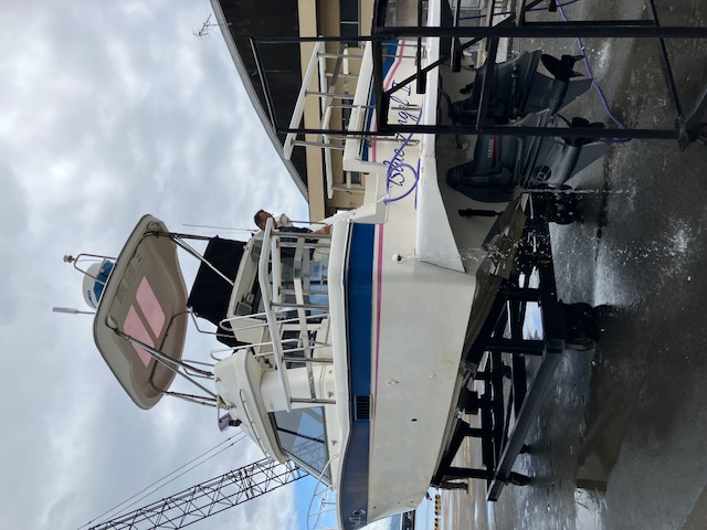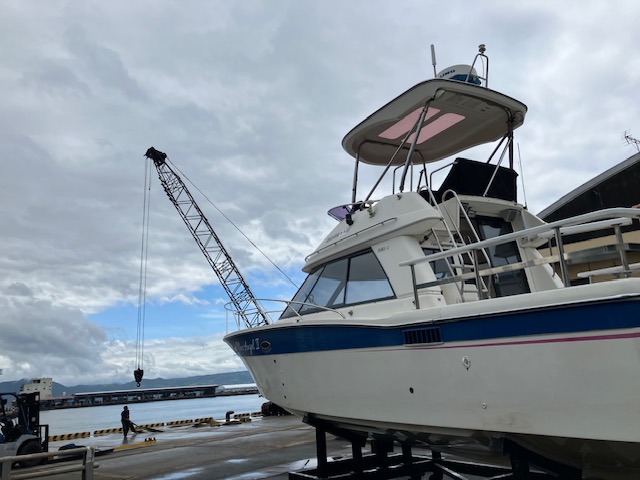 沼津港沖での海洋散骨終了後、船を陸にあげて洗船、清掃等を行います。