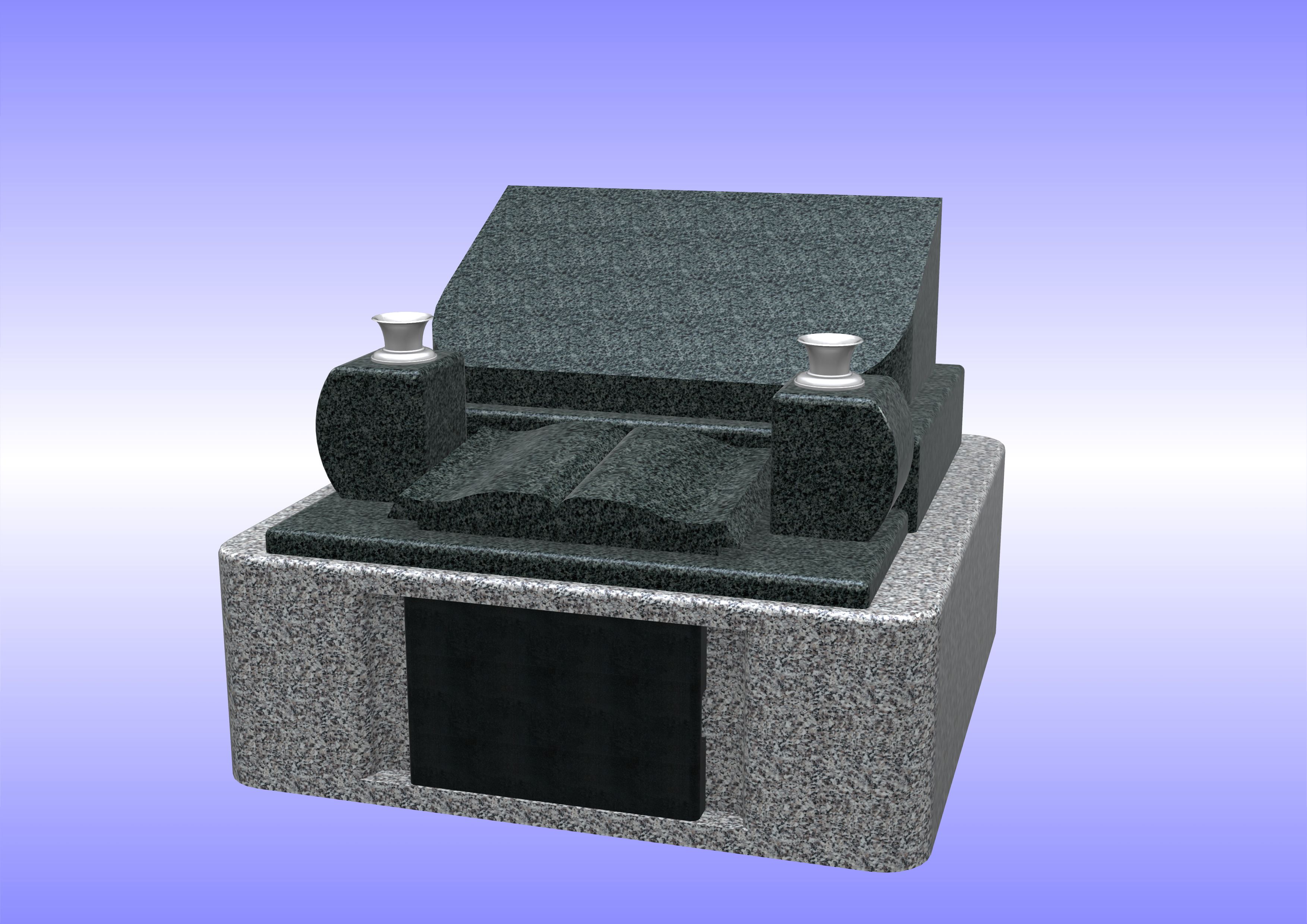 中央のブック型の墓誌に戒名を彫刻する様にデザインしました。