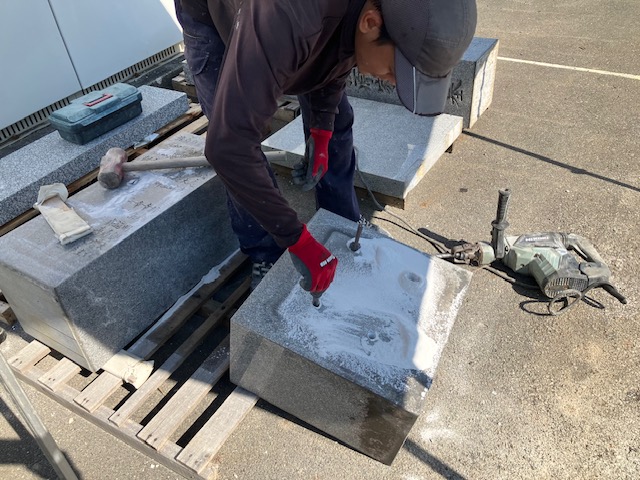ハンマードリルで穴をあけ、セリ矢を割りたい方向にセットします。