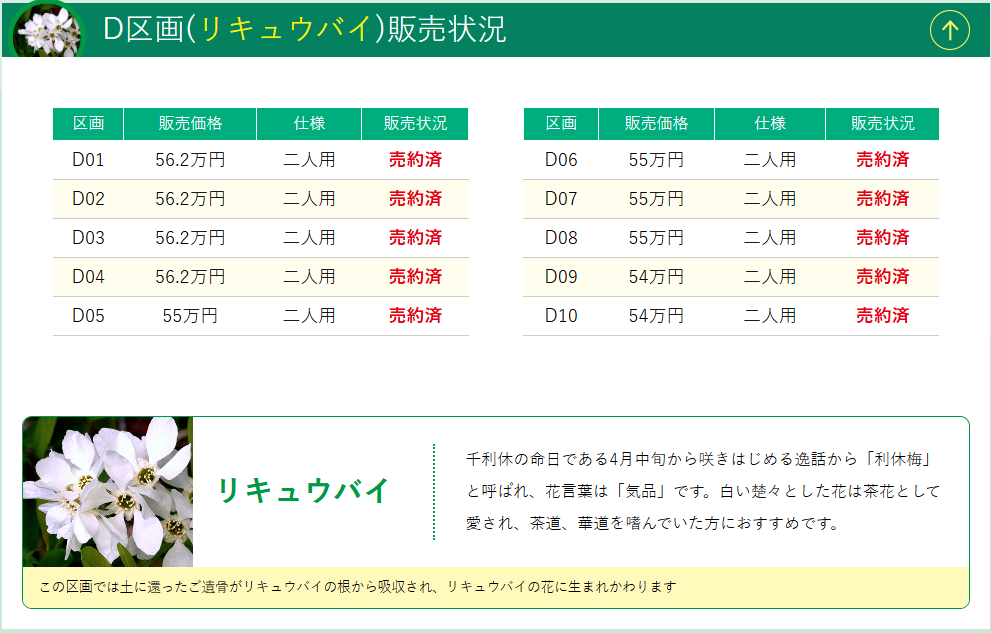 そして、浜松の樹木葬にて、1~2名様用の一番小さな区画が完売しました!