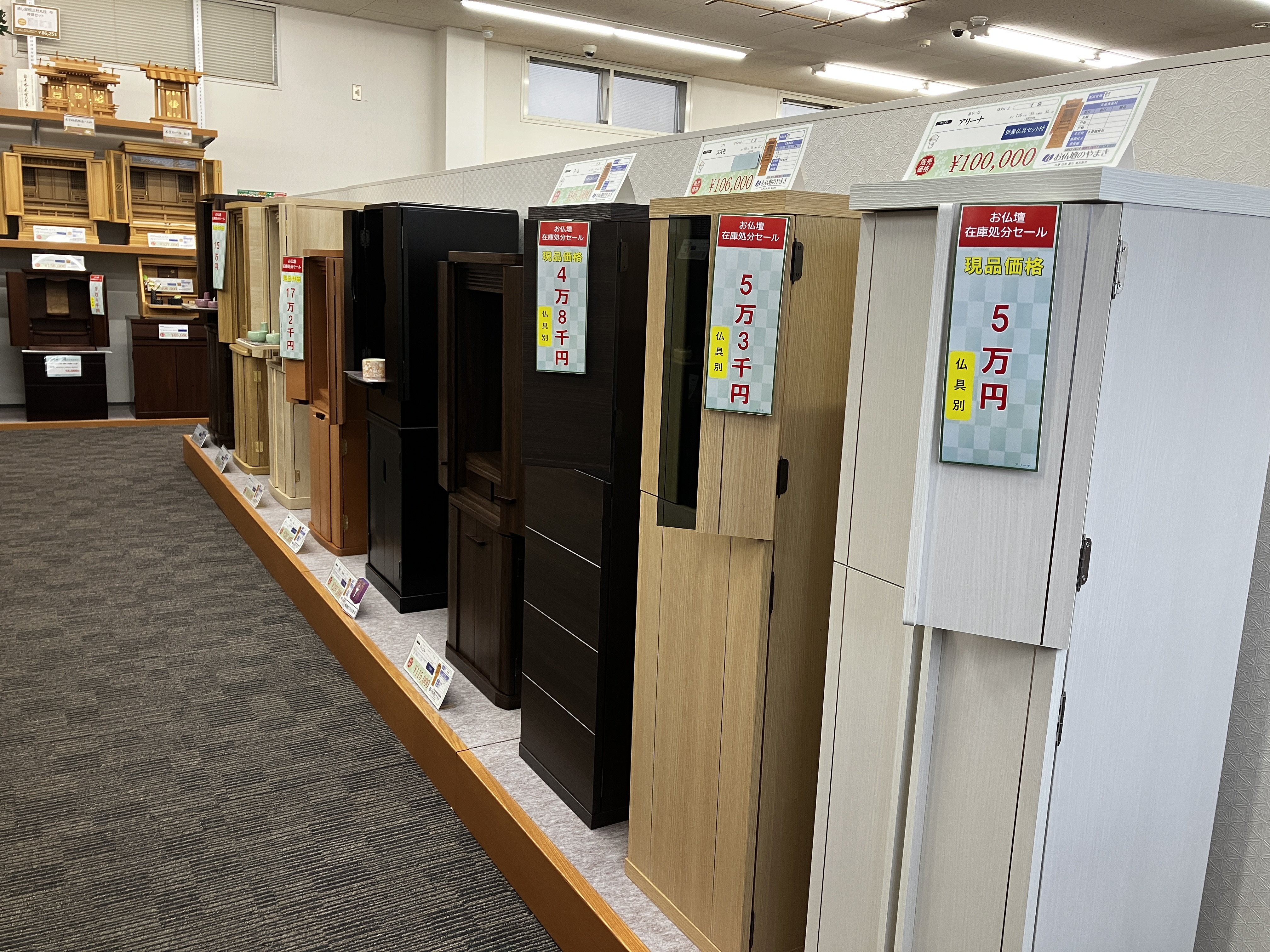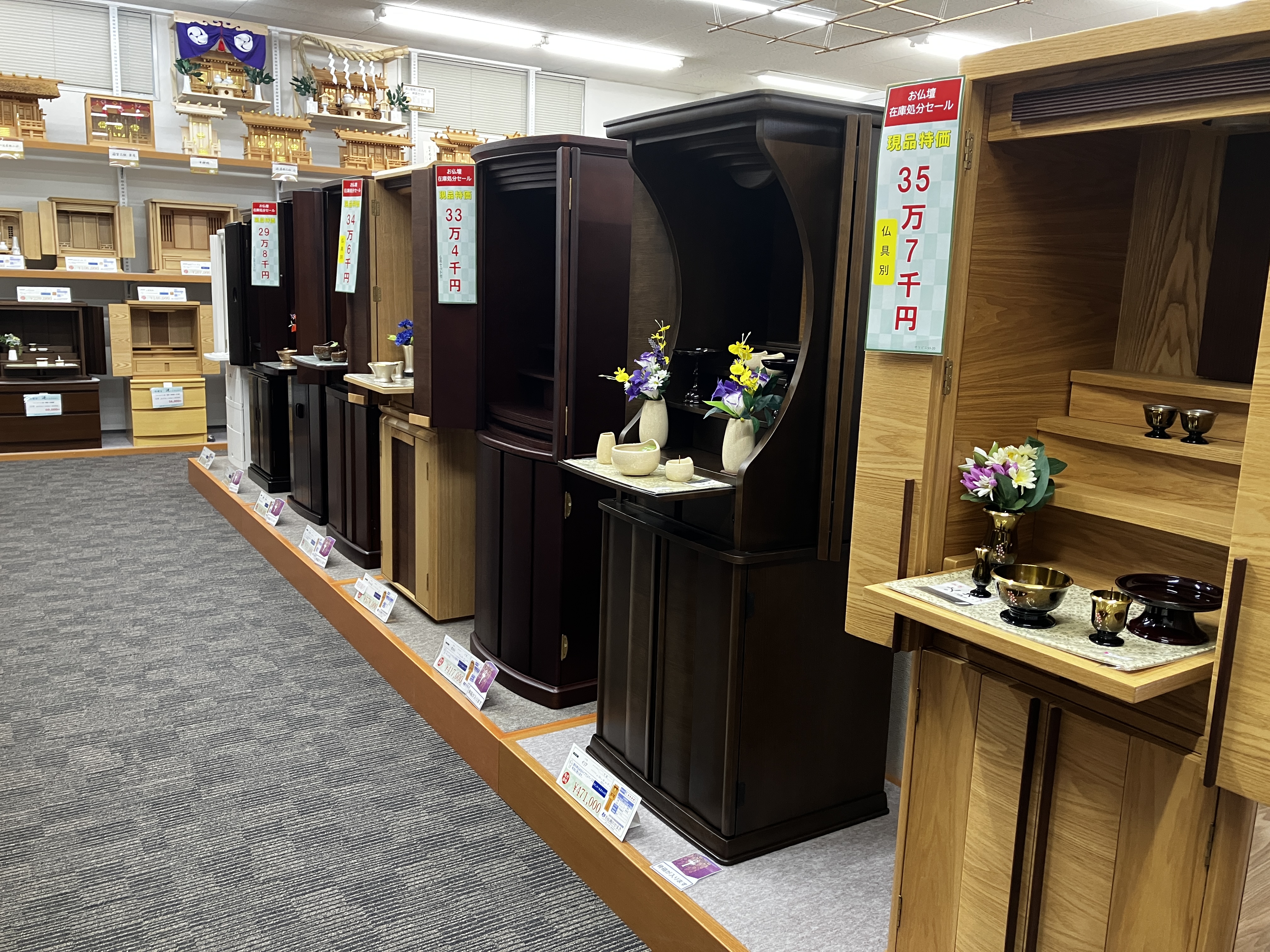 店内展示のお仏壇、仏具を中心に特別価格でご用意しております。