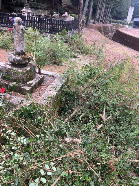 まず周りの木を伐採します。中が見えないくらいの茂みでした。
