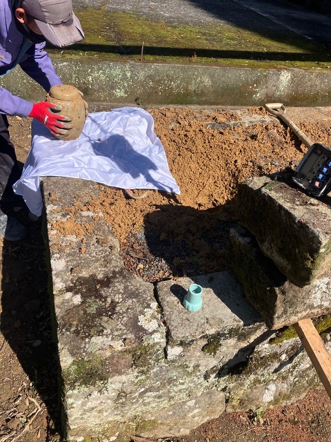 本体の石碑を一つ一つどかし、中を下まで掘り下げます。