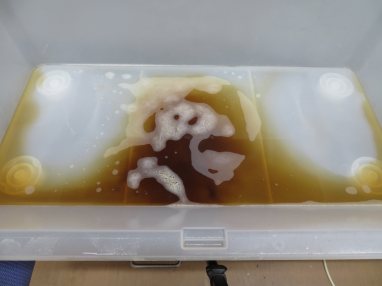 位牌を洗い流した時に出た水です。 汚れ具合がよく分かります。