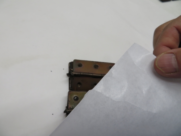 扉についている金具は蝶番(ちょうばん)といいます。 こちらも今から丁寧に外していきます。