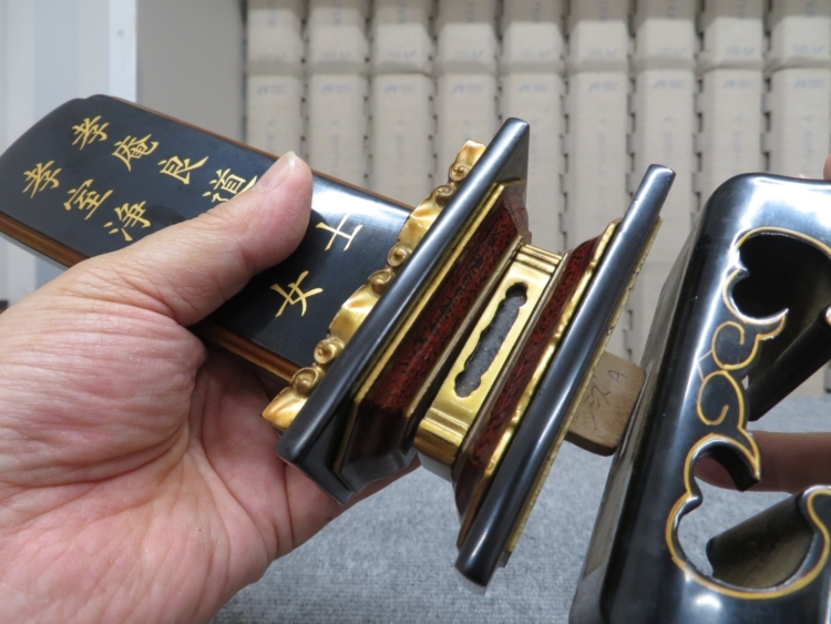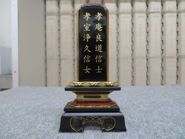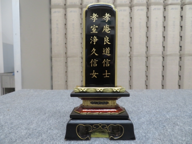 お位牌のクリーニングのご依頼です。 クリーニング後に金粉の塗装も一緒に作業させて頂きます。 (※戒名の一部を画像処理してあります)