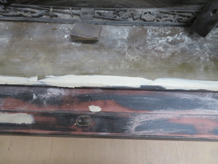 次にパテを使用して仏壇全体のへこみを 埋めていきます。
