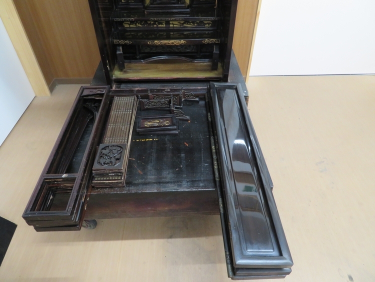 仏壇の扉 障子 高欄 引き出し部分を 取り出しました。