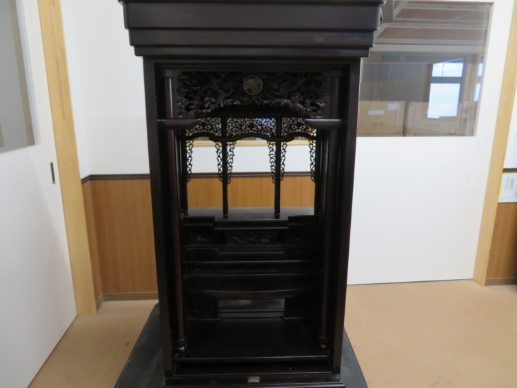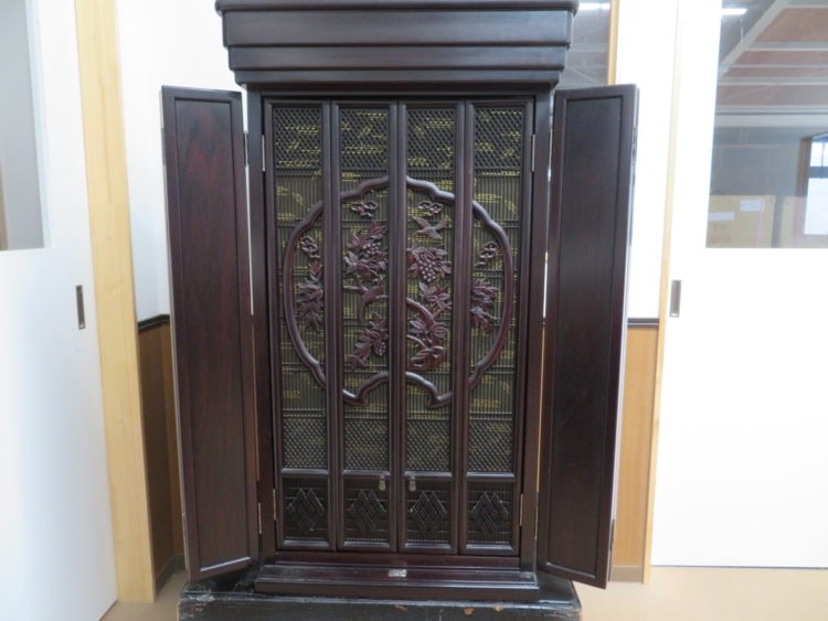 大戸(仏壇の扉)を外しました。 外せる部分は外してクリーニング作業に取り掛かります。