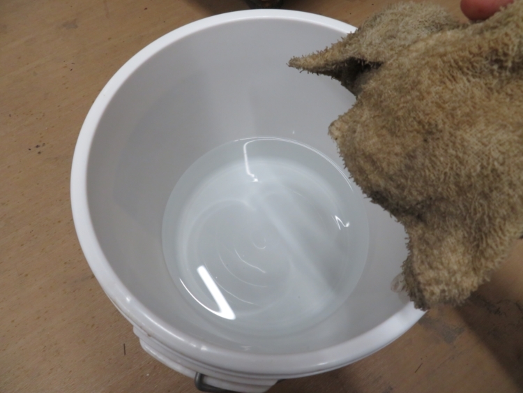 汚れた布を水で洗います。