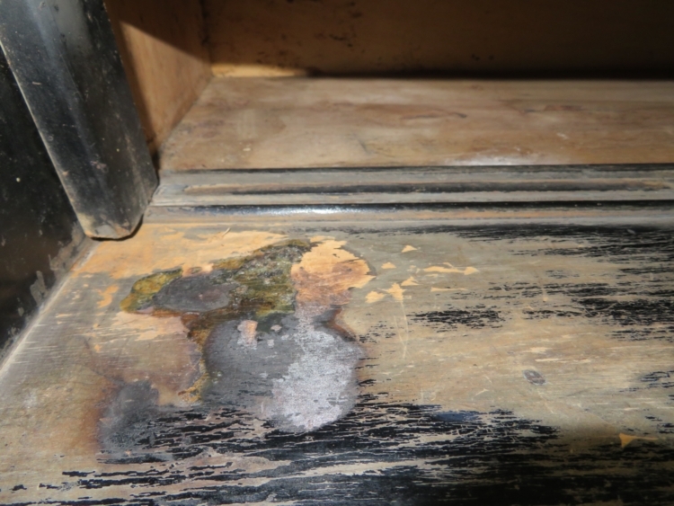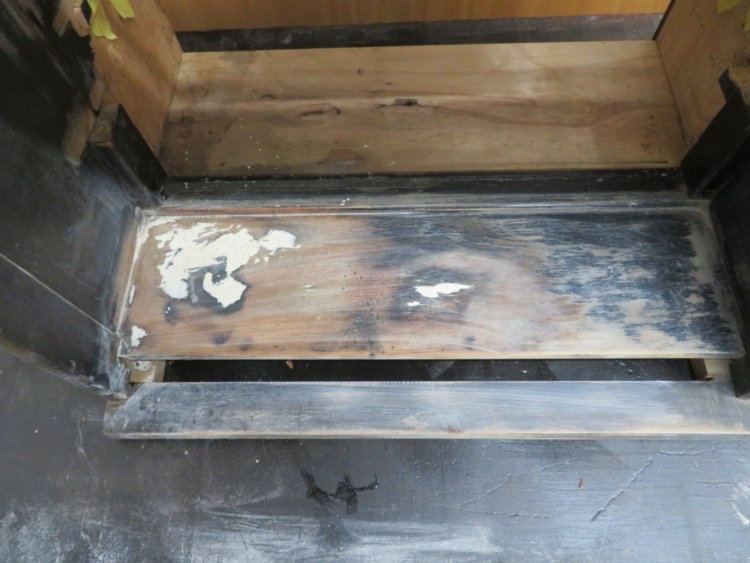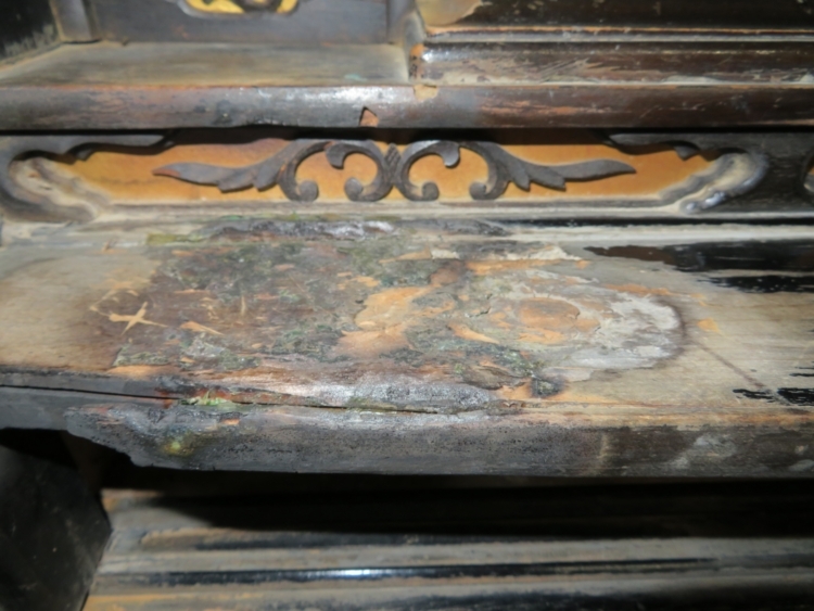 長い年月の間 花瓶や仏具などの設置で傷や劣化が目立ちます。
