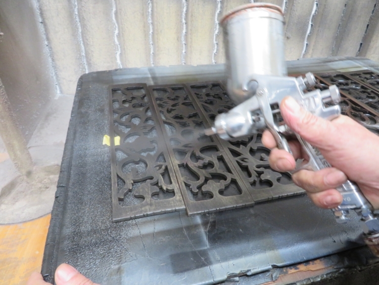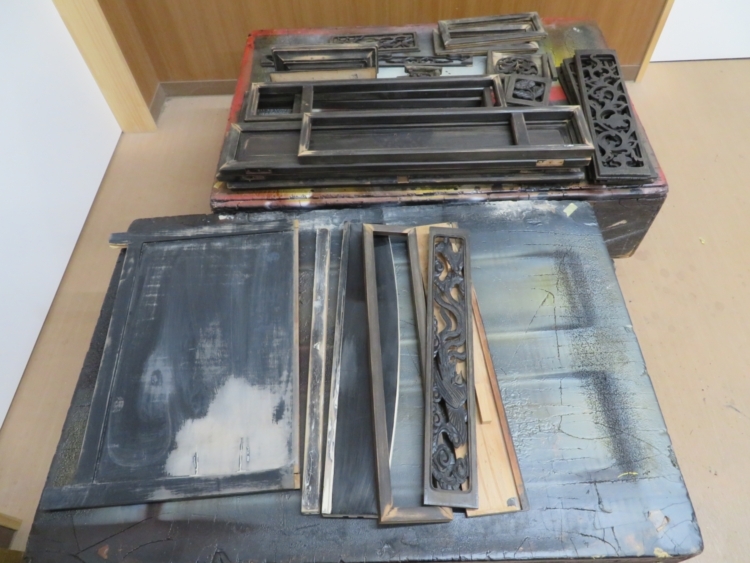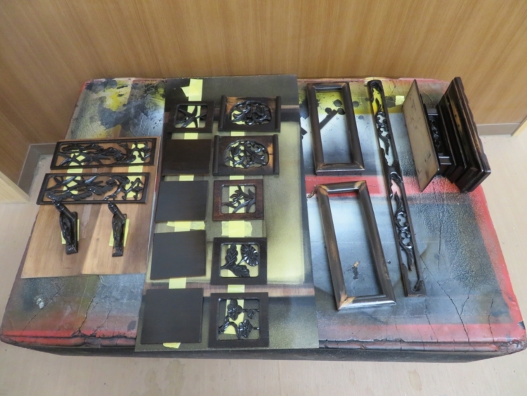 仏壇の部品を全て外し 荒目のペーパーで丁寧にペーパー掛けを 行っていきます。
