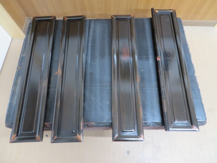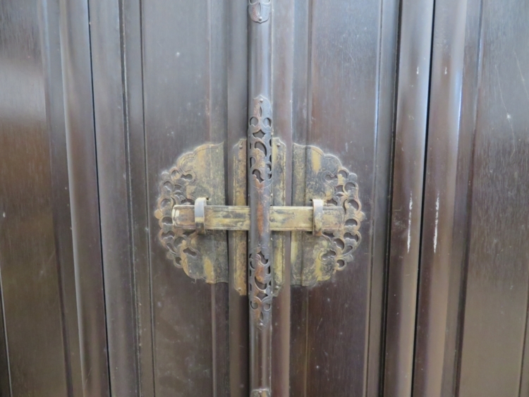仏壇扉の八双(扉の金具)部分です。 だいぶ色が抜け落ちてしまっています。