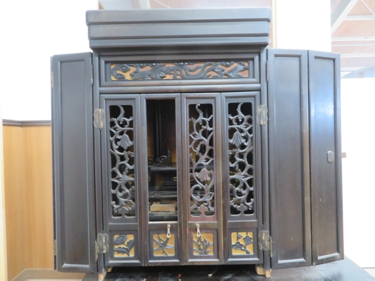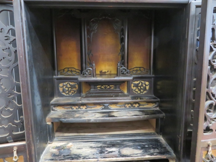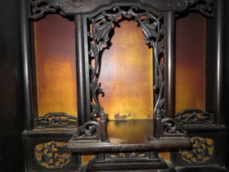 仏壇の中です。 金紙もだいぶ汚れが目立ち 全体的に汚れ傷みがあります。