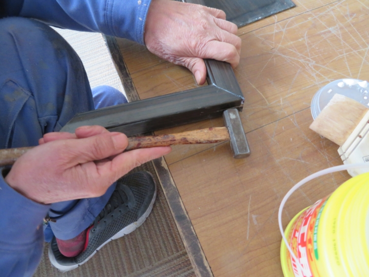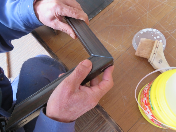 扉の枠を接着剤で接合していきます。
