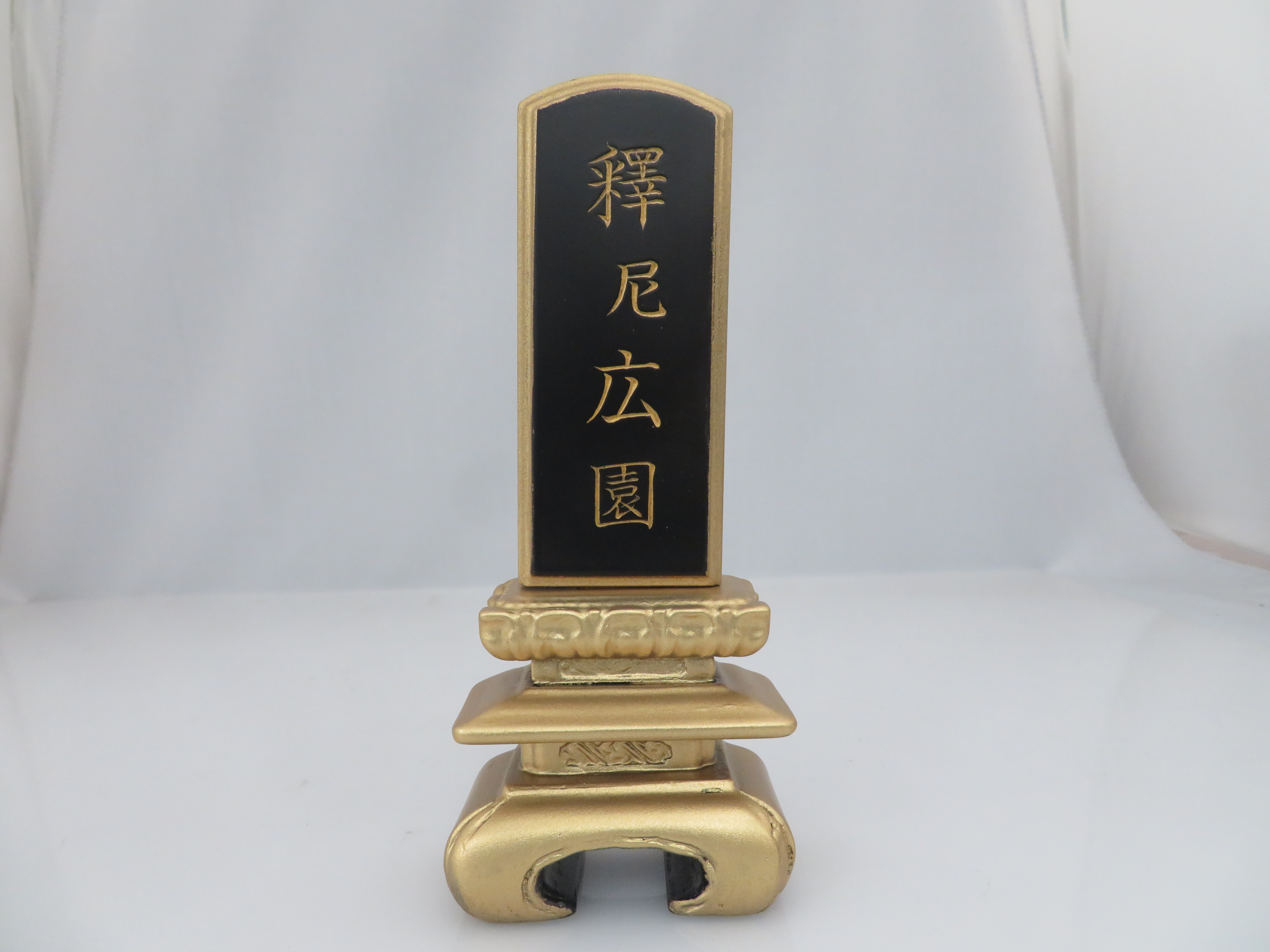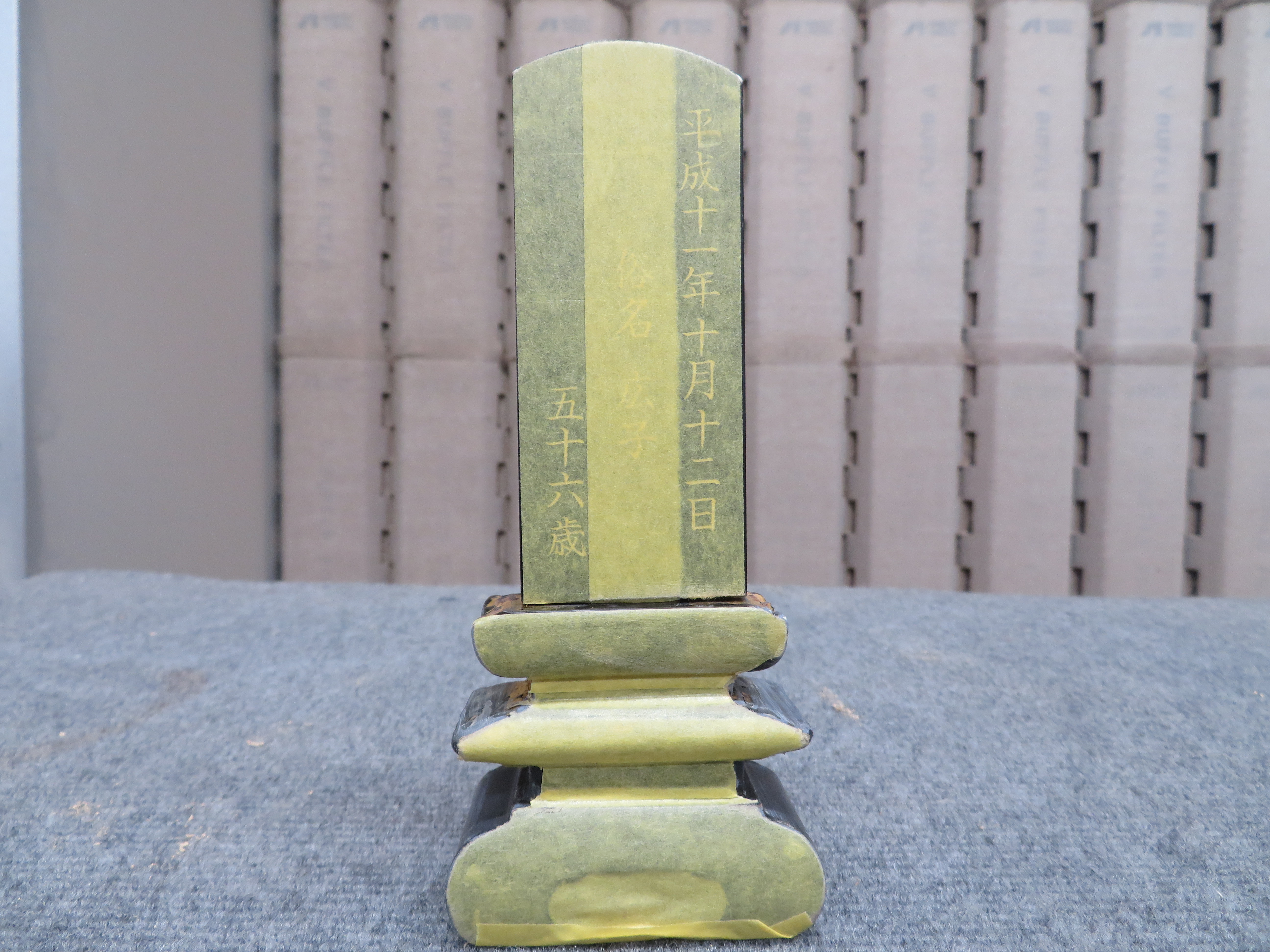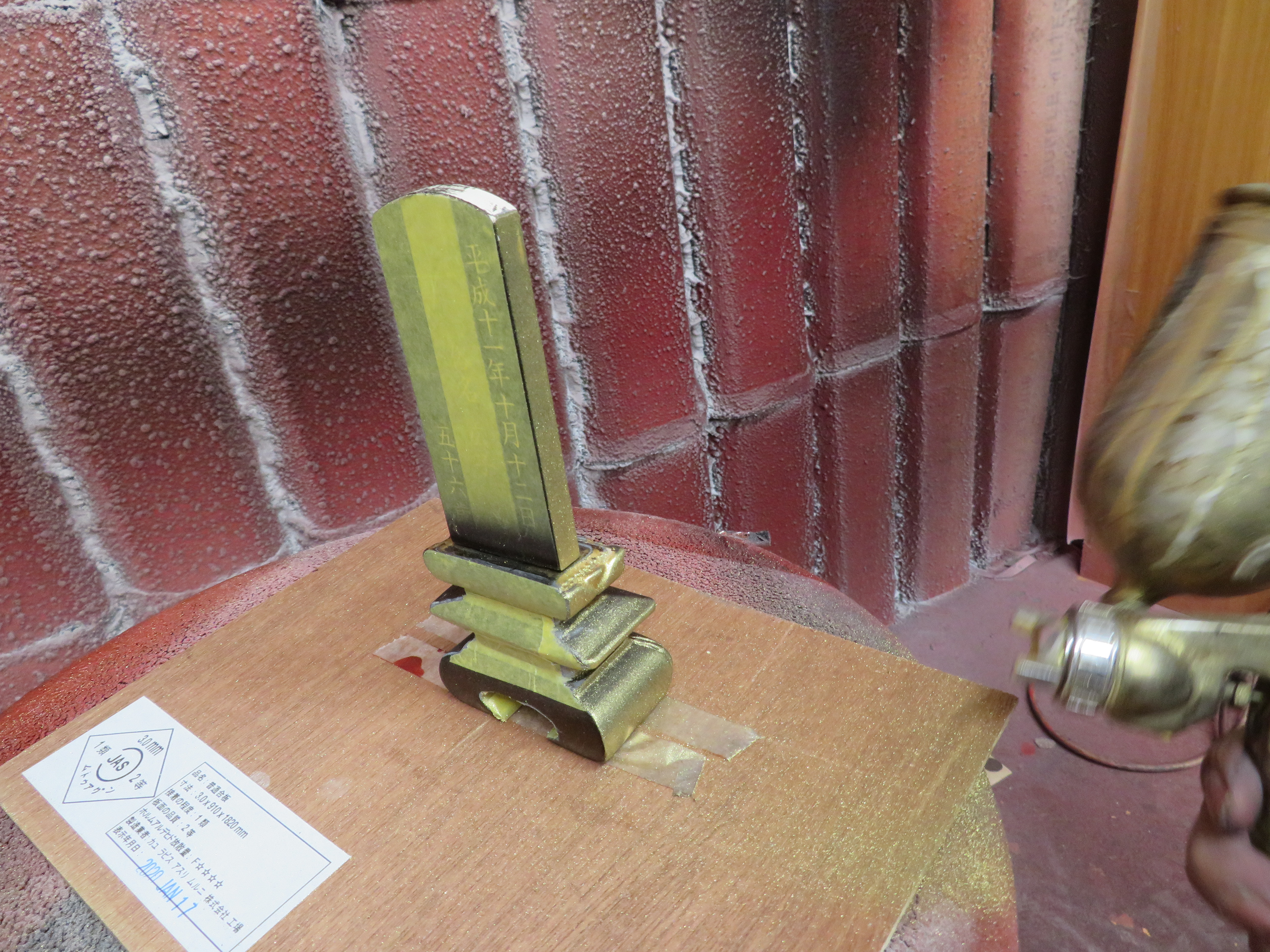 養生が完了した後金色塗装を施します。 (※戒名の一部を画像処理してあります)