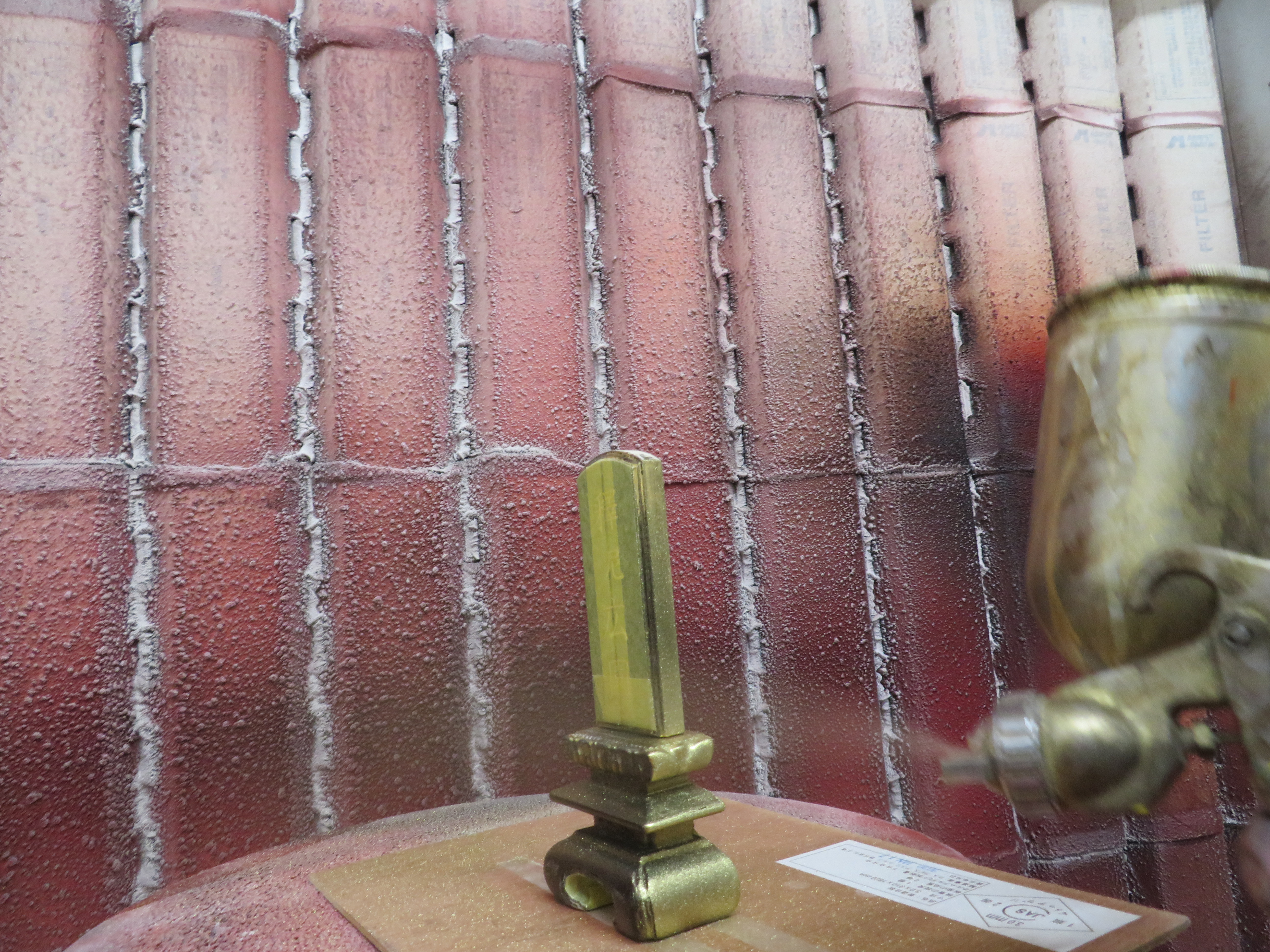 次に金色塗装です。黒色塗装部分に金色部分が付着しないよう マスキングテープで養生をします。