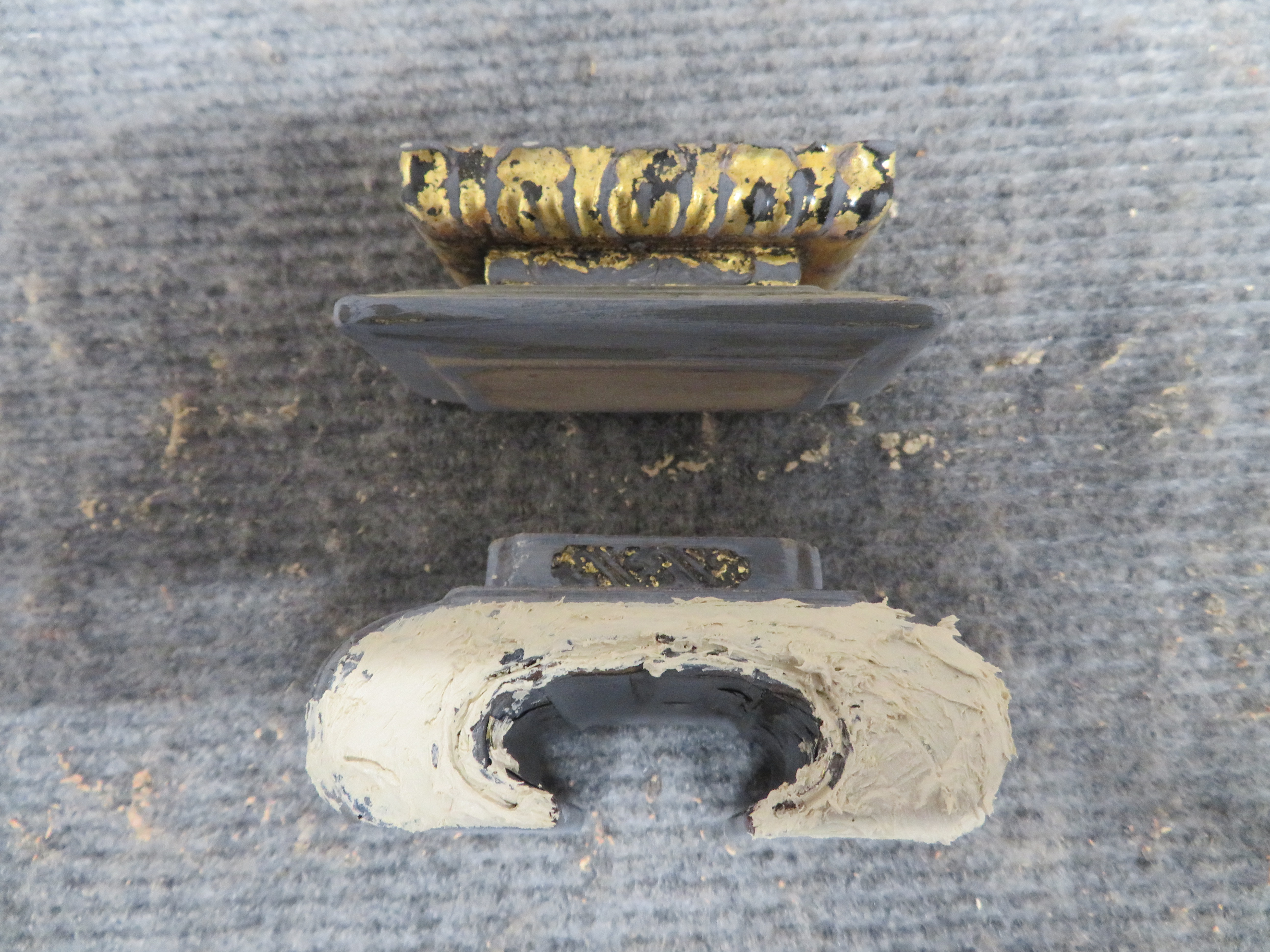 まずは位牌の下部分の劣化部分をパテ埋め しました。