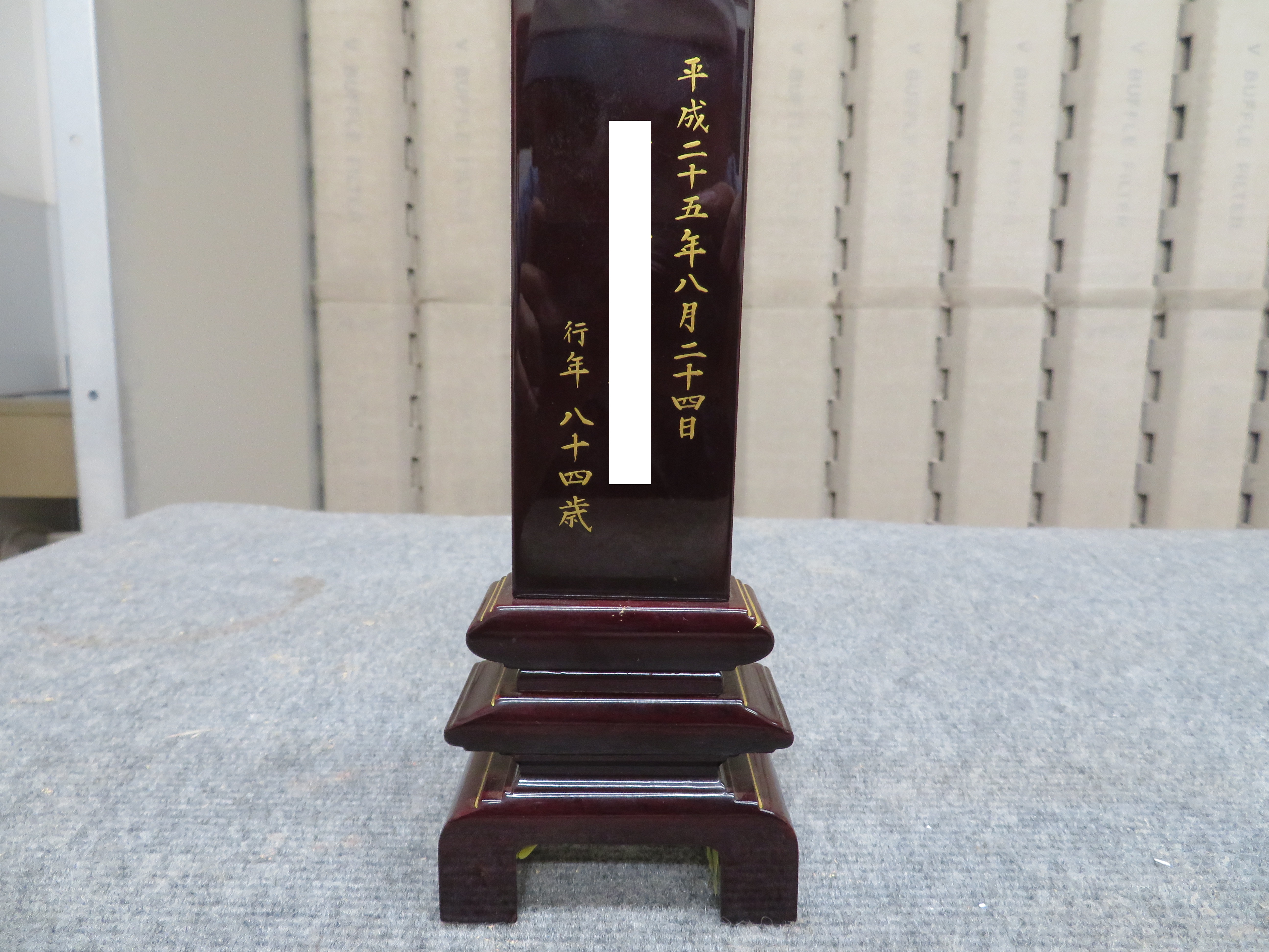 お位牌の戒名を1名様から2名様にする作業を 行っていきます。 (※戒名の一部を画像処理してあります)