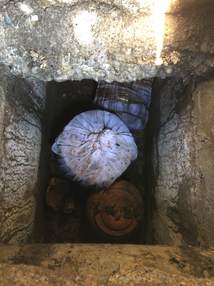 お墓の納骨室が骨壺でいっぱいになってしまった為、納骨室整理のご依頼です。