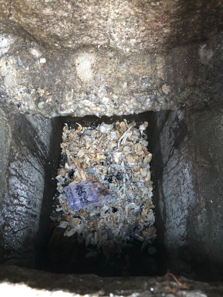 お骨の上に砂をひき土に還してあげます。 今回のお客様はこの上から再び骨壺でお骨を納めていきます。 納骨室の整理は様々です。 気になる方は近くのお店へご相談ください。
