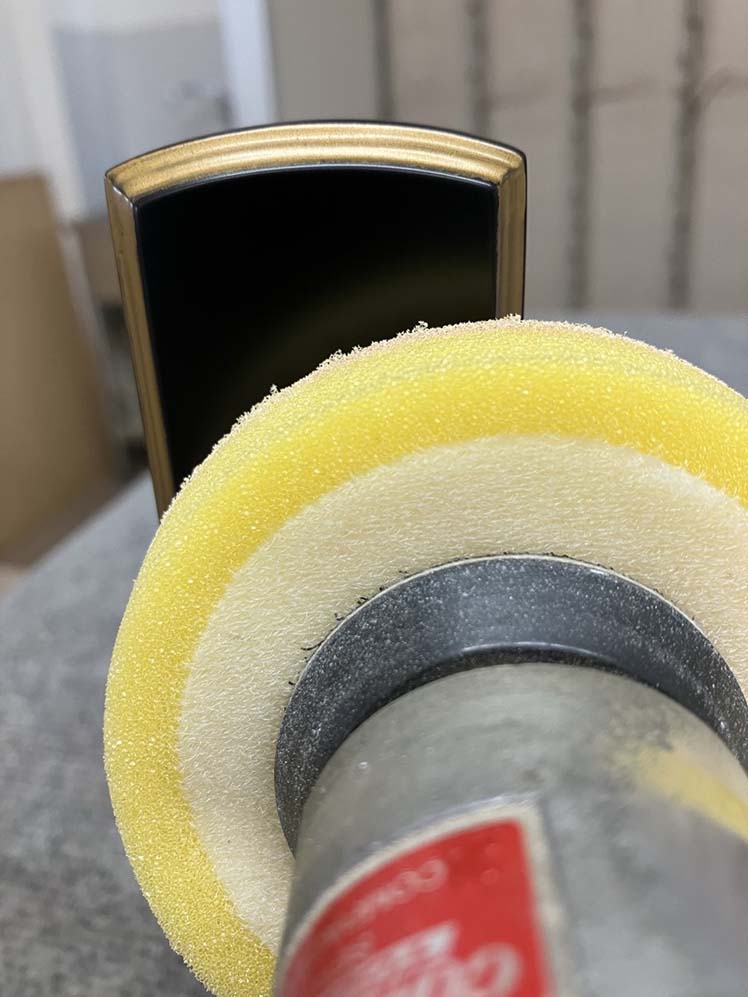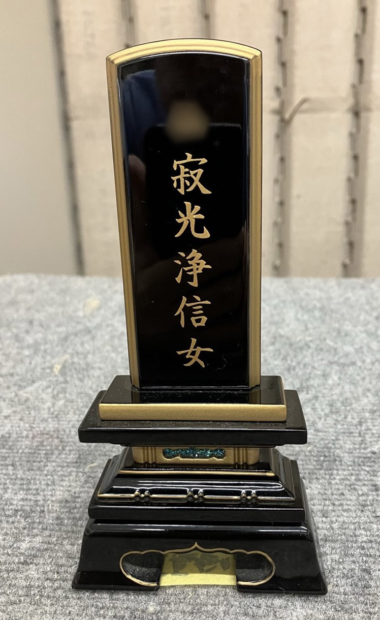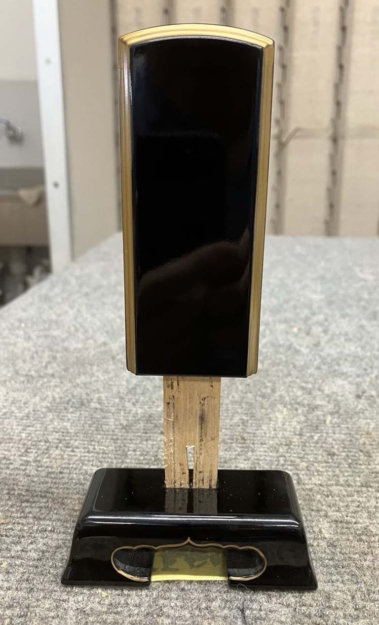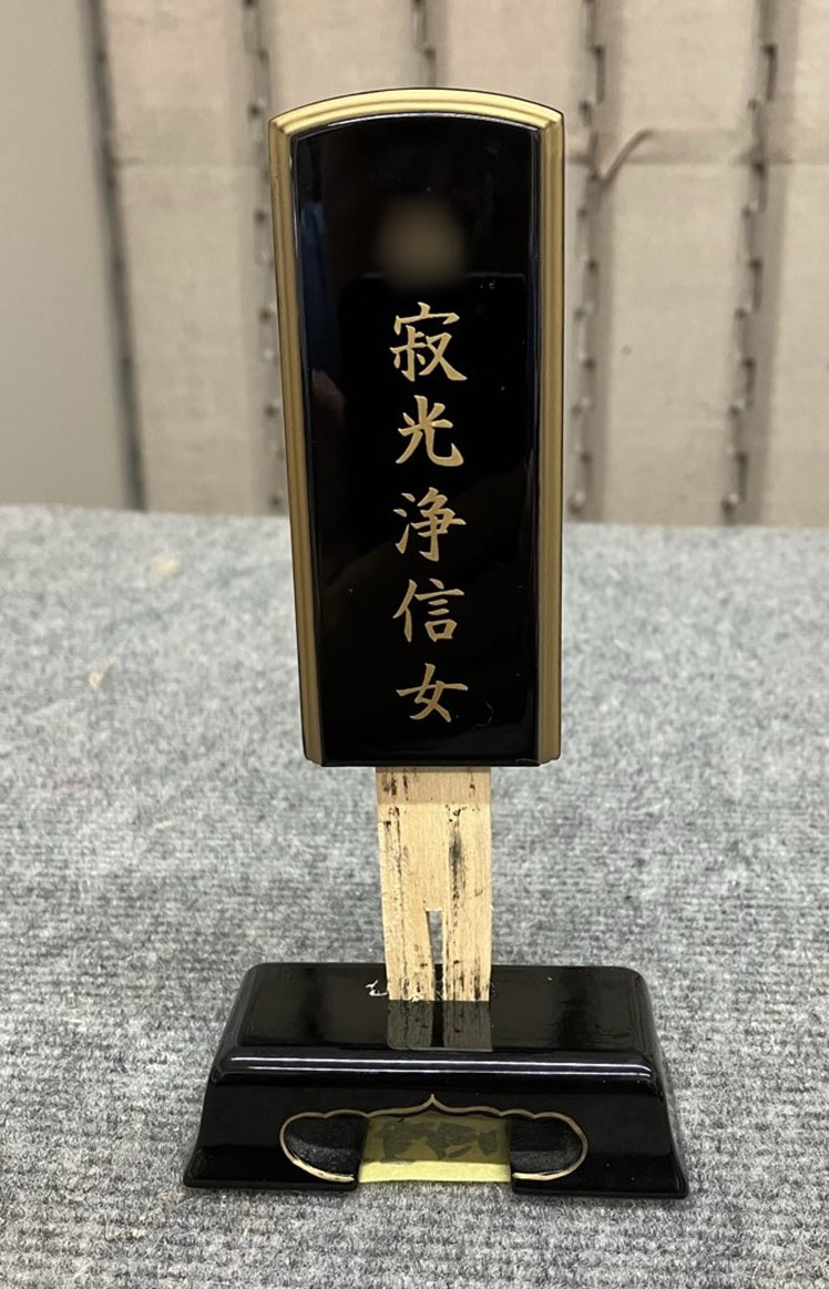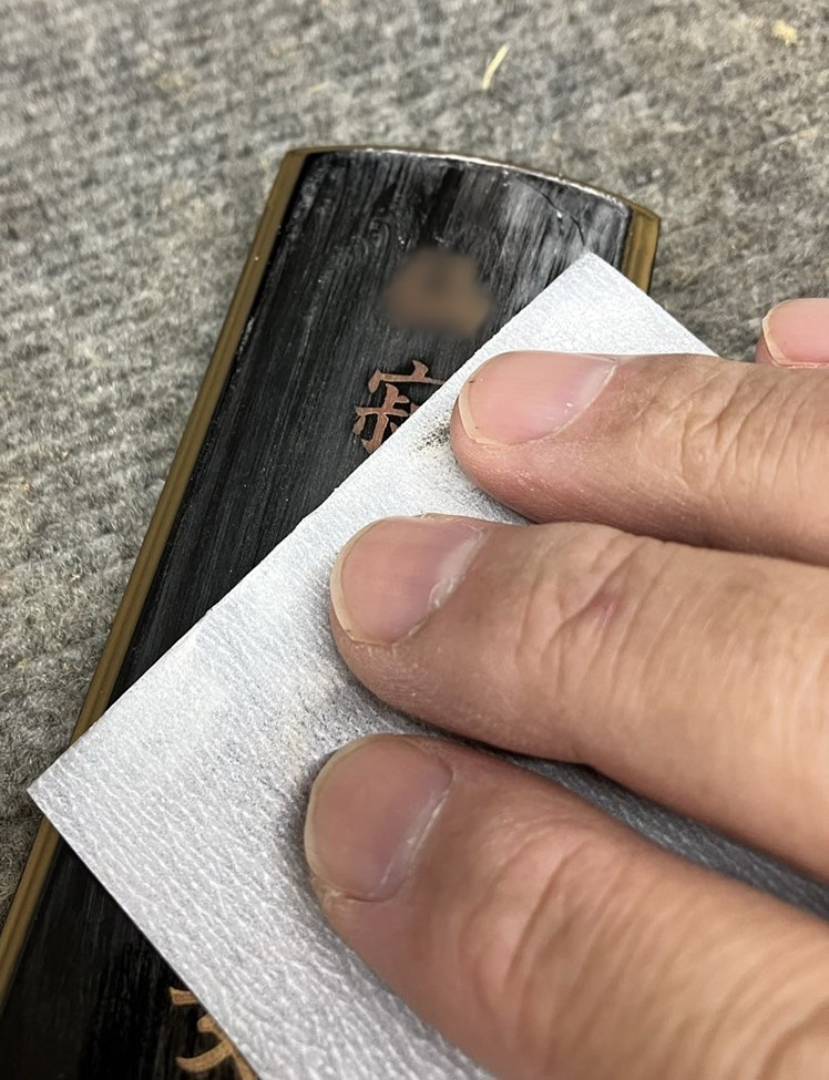 元の艶のある状態になりました。 次に、戒名書きの工程に入ります。