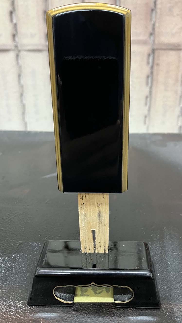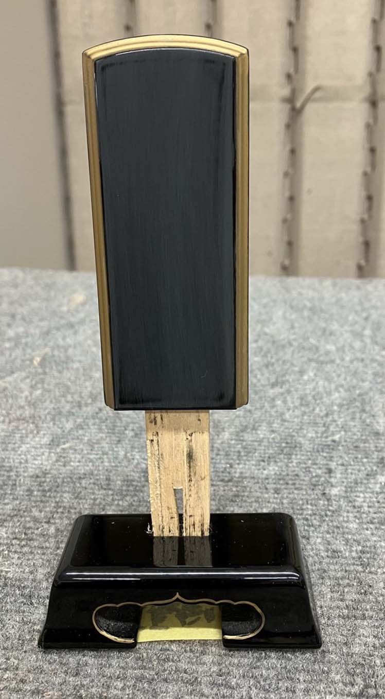両面に書き入れた後、綿コットンで綺麗に拭き取り、台座を取り付けて完成しました。