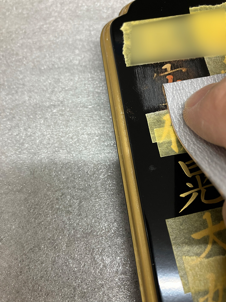 やすりペーパーで、書き直す文字を消していきます。
