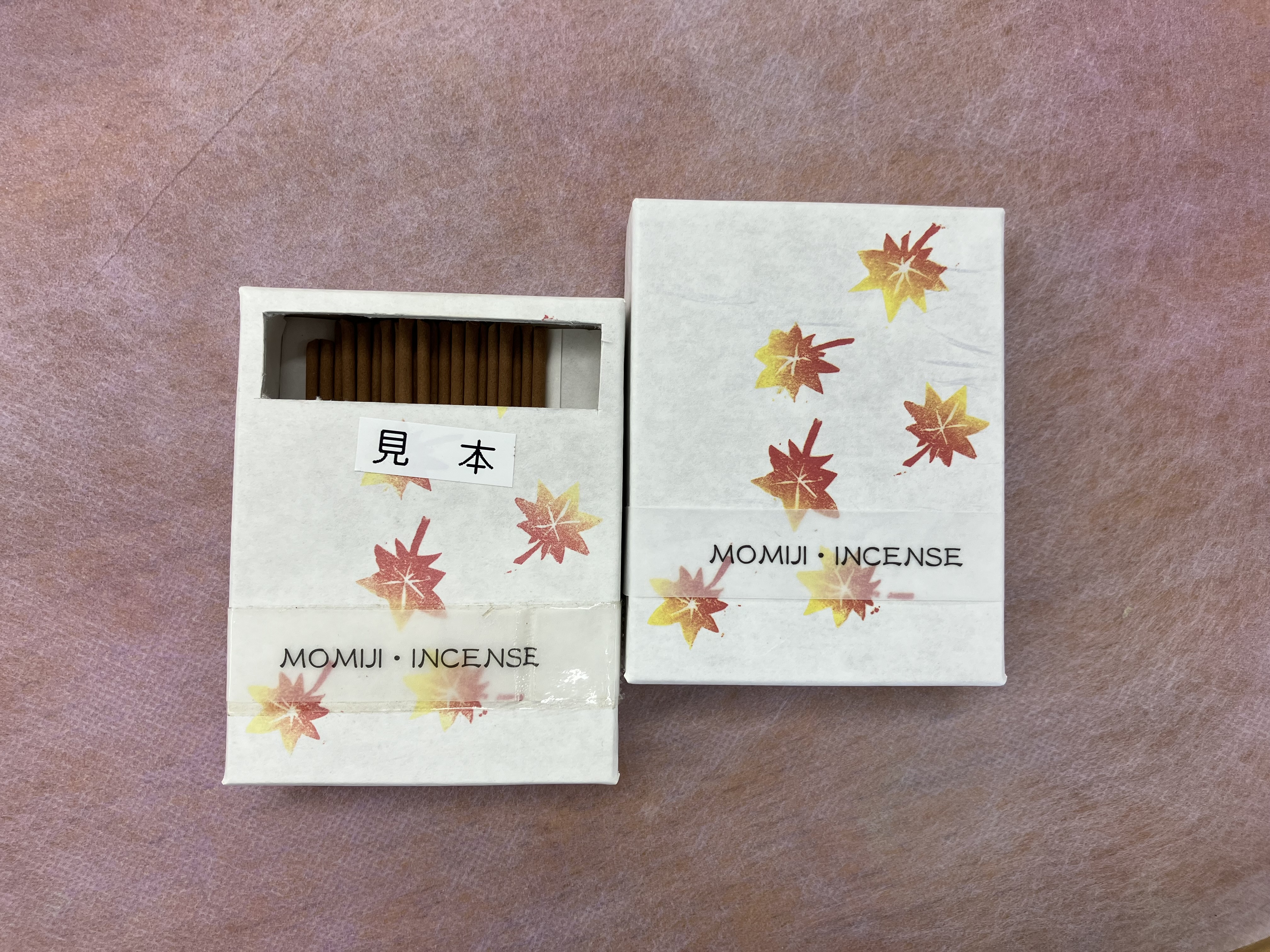 紅葉をイメージした晩秋の香り(白檀、ムスク、シトラスなど)、見本で香りの確認もしていただけます