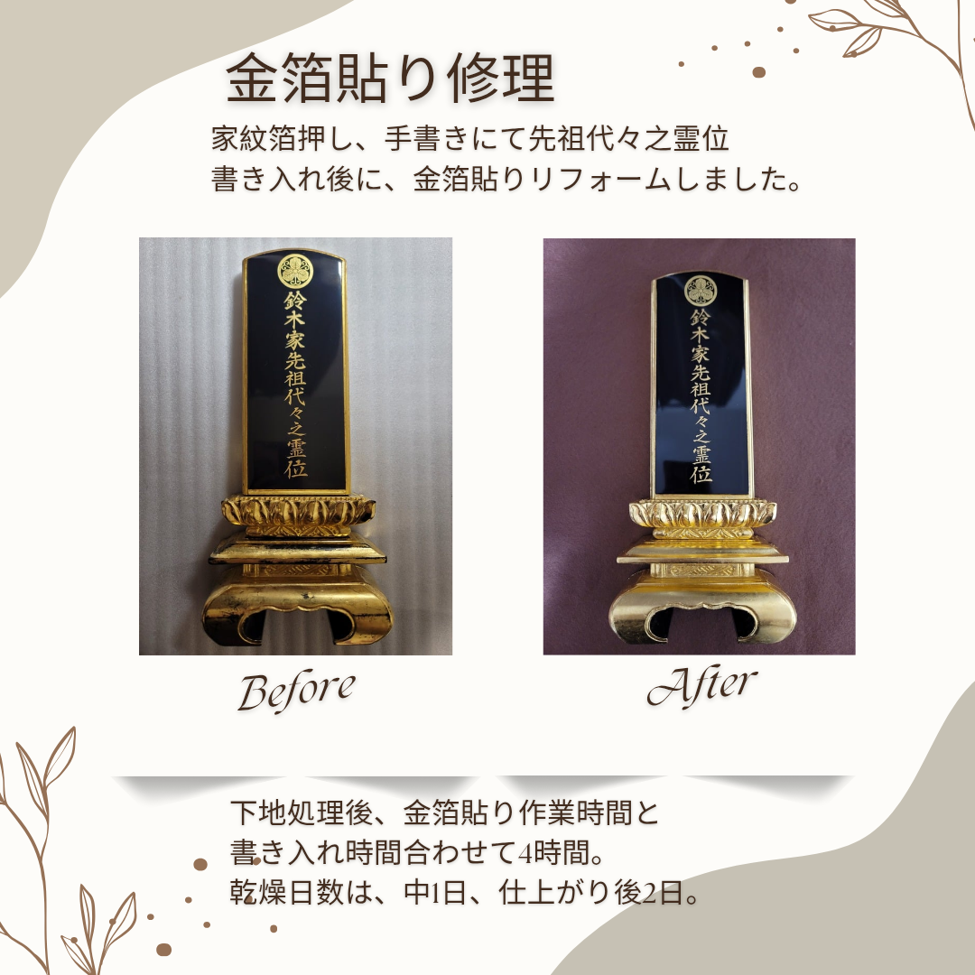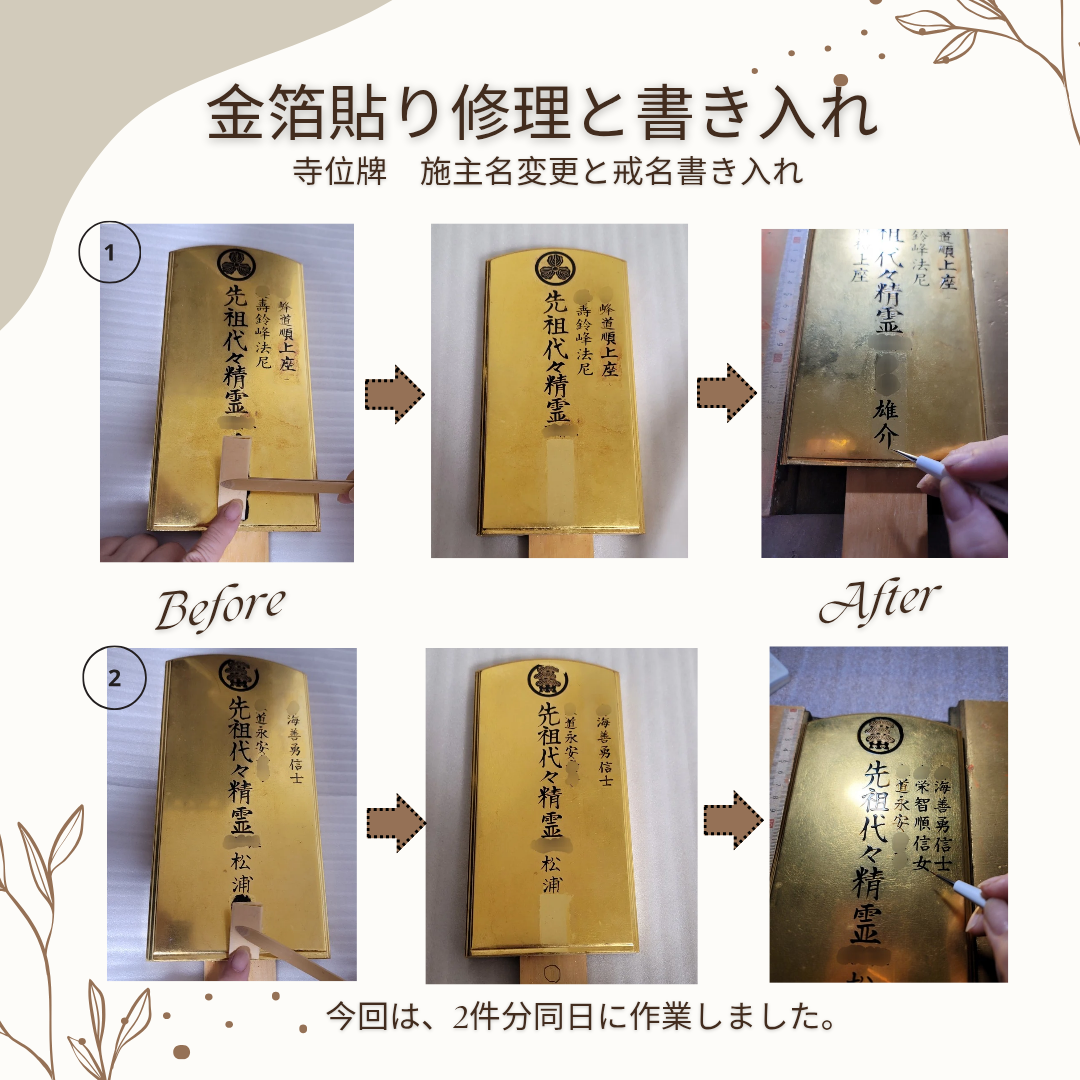 位牌:金箔貼り修理・施主名&戒名書き入れ