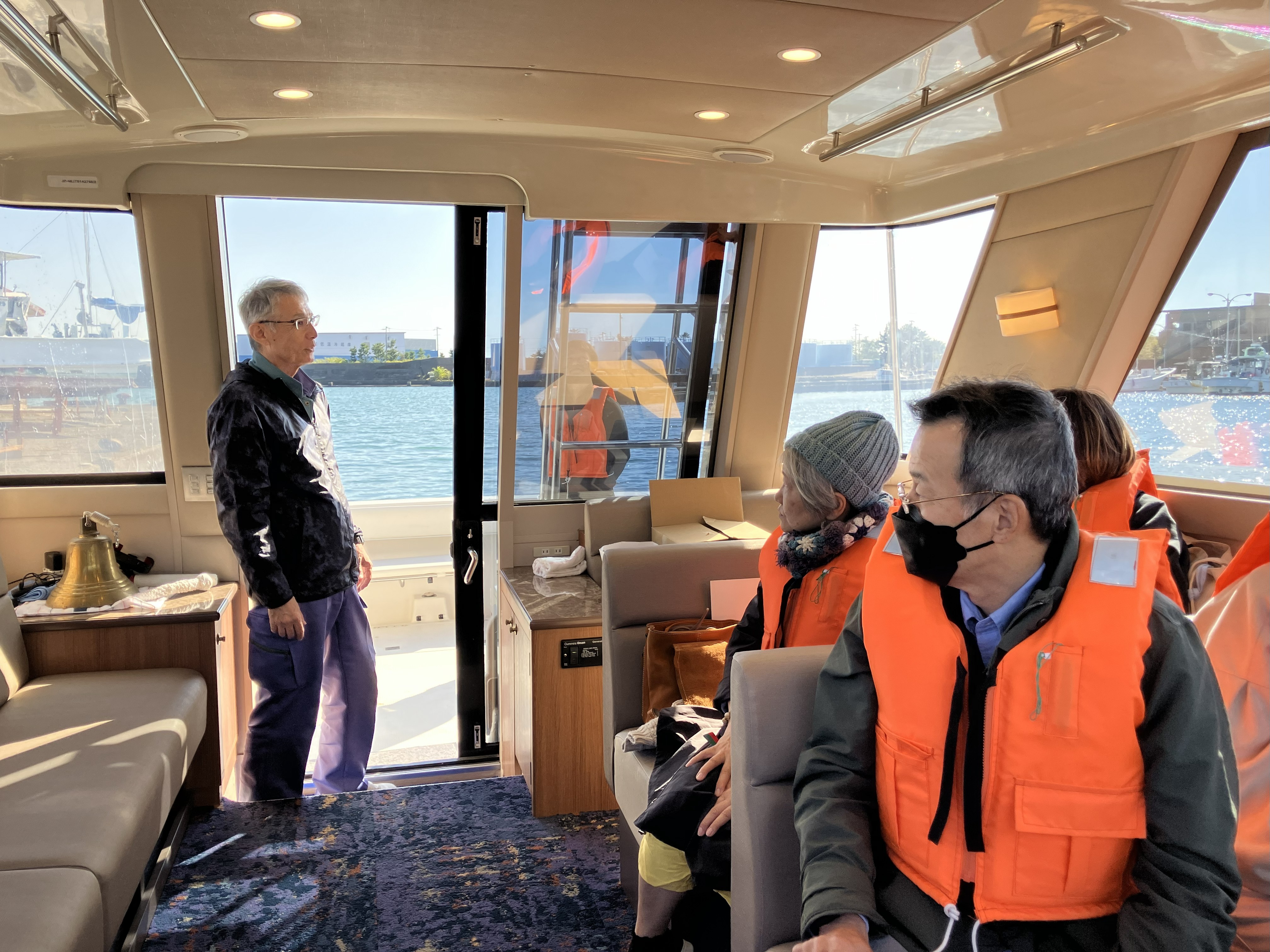 (船長の説明を聴くお客様)