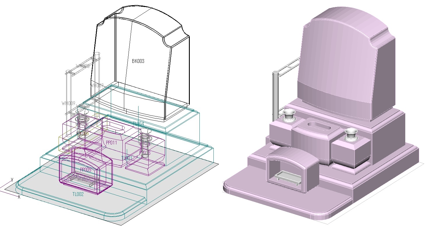 竿石正面を湾曲させ、上段左右に凹R加工を付けました。